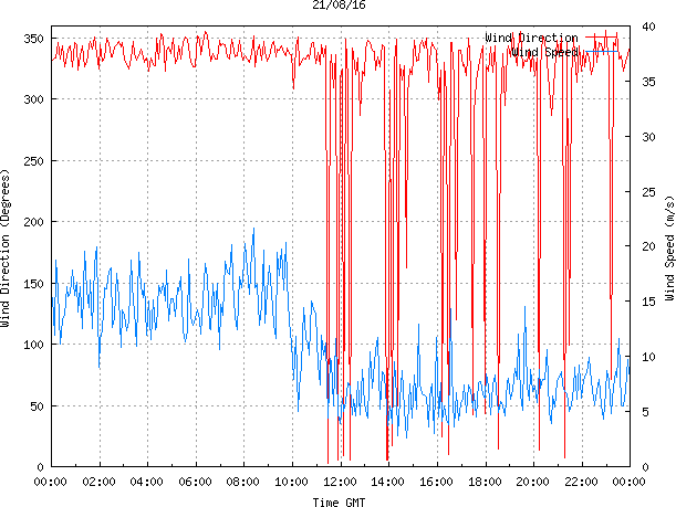 - Max Wind Speed: 21.6 ms-1 Time: 8:22:19 GMT