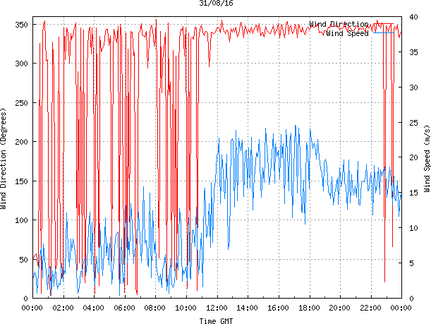 - Max Wind Speed: 24.6 ms-1 Time: 17:02:24 GMT