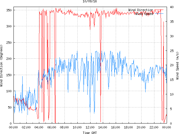 - Max Wind Speed: 24.9 ms-1 Time: 9:57:30 GMT