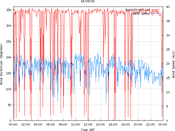 - Max Wind Speed: 23.8 ms-1 Time: 13:32:33 GMT