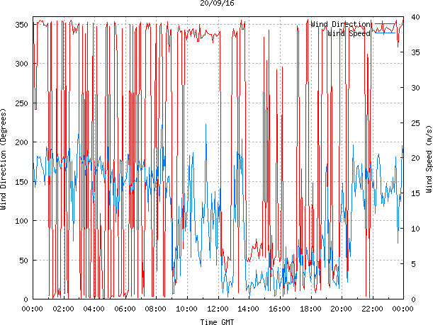 - Max Wind Speed: 24.9 ms-1 Time: 8:22:37 GMT