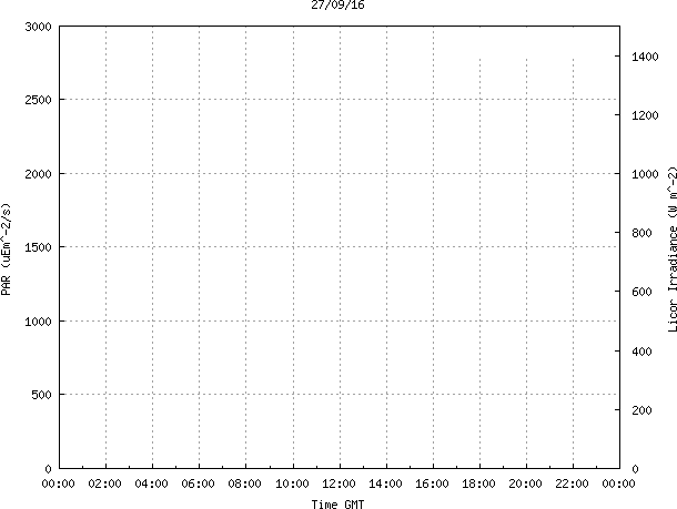 The PML meteorological station, situated on the south-west corner of the building roof, consists of a Hygroclip S3 temperature and humidity sensor housed in a radiation shield, a Mierij Meteo solid state wind sensor (MMW-005), a Chelsea instruments half-hemisphere PAR sensor, a Li-Cor pyranometer (LI-200SZ) and an Omni Instruments 6" tipping bucket raingauge (RG200). The data are logged every 5 minutes using a Pace Scientific XR5 data logger. The real-time rainfall data is likely in error - the correct values will be displayed after a time lag of approximately 24 hours. The meteorological station is sheltered from winds in the north-east and underestimates winds from this quarter. To use these data please contact Dr Tim Smyth.