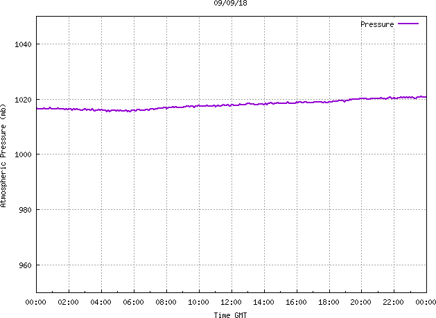 The PML meteorological station, situated on the south-west corner of the building roof, consists of a Hygroclip S3 temperature and humidity sensor housed in a radiation shield, a Mierij Meteo solid state wind sensor (MMW-005), a Chelsea instruments half-hemisphere PAR sensor, a Li-Cor pyranometer (LI-200SZ) and an Omni Instruments 6" tipping bucket raingauge (RG200). The data are logged every 5 minutes using a Pace Scientific XR5 data logger. The real-time rainfall data is likely in error - the correct values will be displayed after a time lag of approximately 24 hours. The meteorological station is sheltered from winds in the north-east and underestimates winds from this quarter. To use these data please contact Dr Tim Smyth.