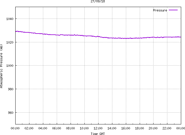 The PML meteorological station, situated on the south-west corner of the building roof, consists of a Hygroclip S3 temperature and humidity sensor housed in a radiation shield, a Mierij Meteo solid state wind sensor (MMW-005), a Chelsea instruments half-hemisphere PAR sensor, a Li-Cor pyranometer (LI-200SZ) and an Omni Instruments 6" tipping bucket raingauge (RG200). The data are logged every 5 minutes using a Pace Scientific XR5 data logger. The real-time rainfall data is likely in error - the correct values will be displayed after a time lag of approximately 24 hours. The meteorological station is sheltered from winds in the north-east and underestimates winds from this quarter. To use these data please contact Dr Tim Smyth.