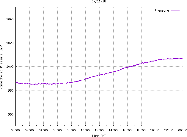 The PML meteorological station, situated on the south-west corner of the building roof, consists of a Hygroclip S3 temperature and humidity sensor housed in a radiation shield, a Mierij Meteo solid state wind sensor (MMW-005), a Chelsea instruments half-hemisphere PAR sensor, a Li-Cor pyranometer (LI-200SZ) and an Omni Instruments 6" tipping bucket raingauge (RG200). The data are logged every 5 minutes using a Pace Scientific XR5 data logger. The real-time rainfall data is likely in error - the correct values will be displayed after a time lag of approximately 24 hours. The meteorological station is sheltered from winds in the north-east and underestimates winds from this quarter. To use these data please contact Dr Tim Smyth.