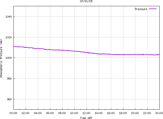 The PML meteorological station, situated on the south-west corner of the building roof, consists of a Hygroclip S3 temperature and humidity sensor housed in a radiation shield, a Mierij Meteo solid state wind sensor (MMW-005), a Chelsea instruments half-hemisphere PAR sensor, a Li-Cor pyranometer (LI-200SZ) and an Omni Instruments 6" tipping bucket raingauge (RG200). The data are logged every 5 minutes using a Pace Scientific XR5 data logger. The real-time rainfall data is likely in error - the correct values will be displayed after a time lag of approximately 24 hours. The meteorological station is sheltered from winds in the north-east and underestimates winds from this quarter. To use these data please contact Dr Tim Smyth.