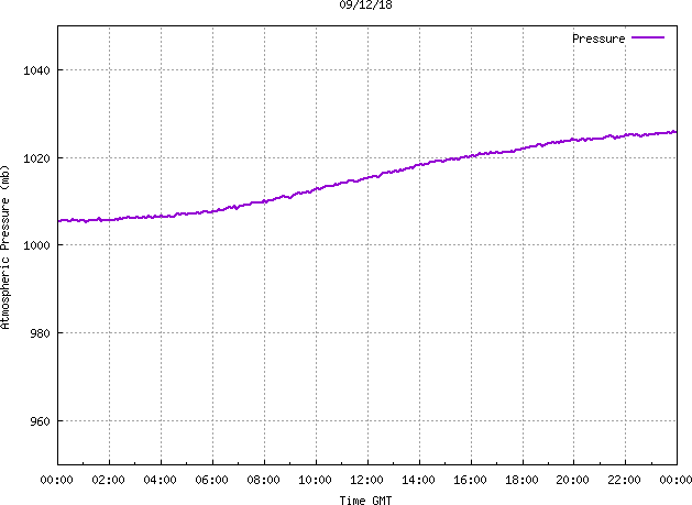 The PML meteorological station, situated on the south-west corner of the building roof, consists of a Hygroclip S3 temperature and humidity sensor housed in a radiation shield, a Mierij Meteo solid state wind sensor (MMW-005), a Chelsea instruments half-hemisphere PAR sensor, a Li-Cor pyranometer (LI-200SZ) and an Omni Instruments 6" tipping bucket raingauge (RG200). The data are logged every 5 minutes using a Pace Scientific XR5 data logger. The real-time rainfall data is likely in error - the correct values will be displayed after a time lag of approximately 24 hours. The meteorological station is sheltered from winds in the north-east and underestimates winds from this quarter. To use these data please contact Dr Tim Smyth.