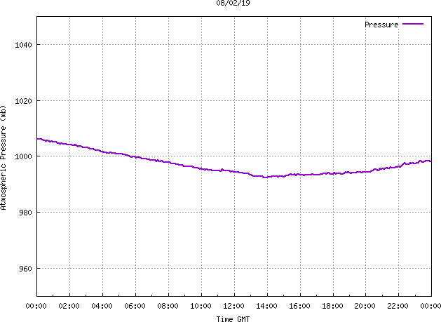 The PML meteorological station, situated on the south-west corner of the building roof, consists of a Hygroclip S3 temperature and humidity sensor housed in a radiation shield, a Mierij Meteo solid state wind sensor (MMW-005), a Chelsea instruments half-hemisphere PAR sensor, a Li-Cor pyranometer (LI-200SZ) and an Omni Instruments 6" tipping bucket raingauge (RG200). The data are logged every 5 minutes using a Pace Scientific XR5 data logger. The real-time rainfall data is likely in error - the correct values will be displayed after a time lag of approximately 24 hours. The meteorological station is sheltered from winds in the north-east and underestimates winds from this quarter. To use these data please contact Dr Tim Smyth.