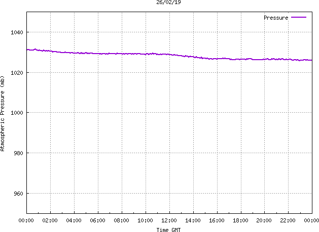 The PML meteorological station, situated on the south-west corner of the building roof, consists of a Hygroclip S3 temperature and humidity sensor housed in a radiation shield, a Mierij Meteo solid state wind sensor (MMW-005), a Chelsea instruments half-hemisphere PAR sensor, a Li-Cor pyranometer (LI-200SZ) and an Omni Instruments 6" tipping bucket raingauge (RG200). The data are logged every 5 minutes using a Pace Scientific XR5 data logger. The real-time rainfall data is likely in error - the correct values will be displayed after a time lag of approximately 24 hours. The meteorological station is sheltered from winds in the north-east and underestimates winds from this quarter. To use these data please contact Dr Tim Smyth.