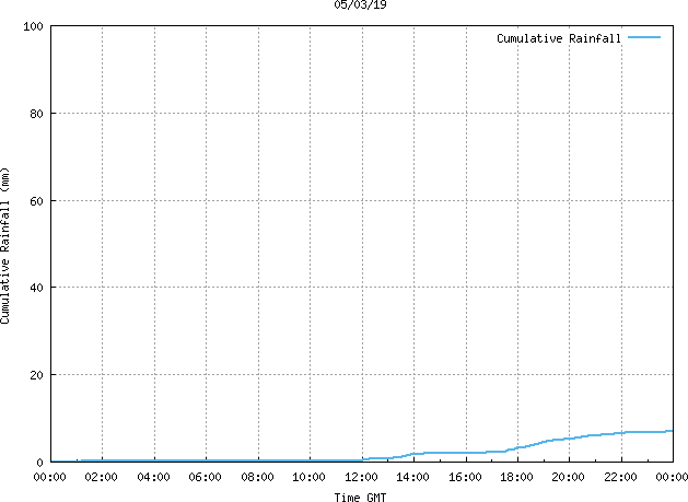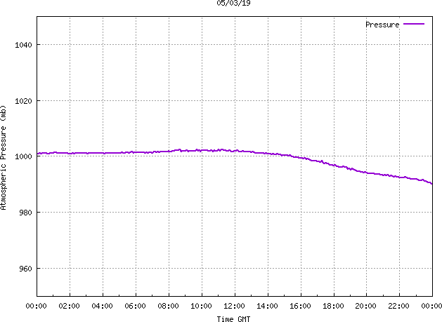 The PML meteorological station, situated on the south-west corner of the building roof, consists of a Hygroclip S3 temperature and humidity sensor housed in a radiation shield, a Mierij Meteo solid state wind sensor (MMW-005), a Chelsea instruments half-hemisphere PAR sensor, a Li-Cor pyranometer (LI-200SZ) and an Omni Instruments 6" tipping bucket raingauge (RG200). The data are logged every 5 minutes using a Pace Scientific XR5 data logger. The real-time rainfall data is likely in error - the correct values will be displayed after a time lag of approximately 24 hours. The meteorological station is sheltered from winds in the north-east and underestimates winds from this quarter. To use these data please contact Dr Tim Smyth.
