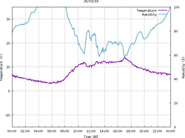 - Max Temp: 14.0 °C Time: 17:06:47 GMT