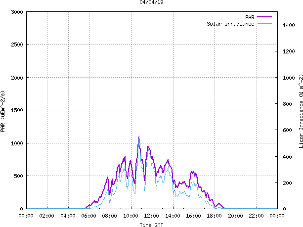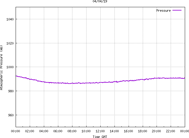 The PML meteorological station, situated on the south-west corner of the building roof, consists of a Hygroclip S3 temperature and humidity sensor housed in a radiation shield, a Mierij Meteo solid state wind sensor (MMW-005), a Chelsea instruments half-hemisphere PAR sensor, a Li-Cor pyranometer (LI-200SZ) and an Omni Instruments 6" tipping bucket raingauge (RG200). The data are logged every 5 minutes using a Pace Scientific XR5 data logger. The real-time rainfall data is likely in error - the correct values will be displayed after a time lag of approximately 24 hours. The meteorological station is sheltered from winds in the north-east and underestimates winds from this quarter. To use these data please contact Dr Tim Smyth.