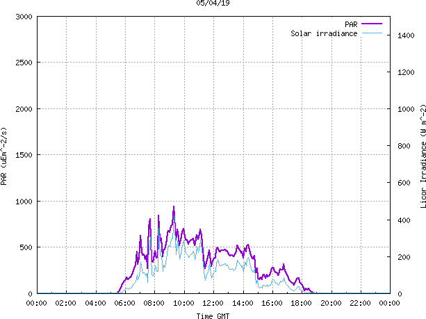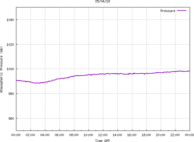 The PML meteorological station, situated on the south-west corner of the building roof, consists of a Hygroclip S3 temperature and humidity sensor housed in a radiation shield, a Mierij Meteo solid state wind sensor (MMW-005), a Chelsea instruments half-hemisphere PAR sensor, a Li-Cor pyranometer (LI-200SZ) and an Omni Instruments 6" tipping bucket raingauge (RG200). The data are logged every 5 minutes using a Pace Scientific XR5 data logger. The real-time rainfall data is likely in error - the correct values will be displayed after a time lag of approximately 24 hours. The meteorological station is sheltered from winds in the north-east and underestimates winds from this quarter. To use these data please contact Dr Tim Smyth.
