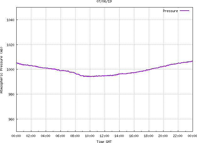 The PML meteorological station, situated on the south-west corner of the building roof, consists of a Hygroclip S3 temperature and humidity sensor housed in a radiation shield, a Mierij Meteo solid state wind sensor (MMW-005), a Chelsea instruments half-hemisphere PAR sensor, a Li-Cor pyranometer (LI-200SZ) and an Omni Instruments 6" tipping bucket raingauge (RG200). The data are logged every 5 minutes using a Pace Scientific XR5 data logger. The real-time rainfall data is likely in error - the correct values will be displayed after a time lag of approximately 24 hours. The meteorological station is sheltered from winds in the north-east and underestimates winds from this quarter. To use these data please contact Dr Tim Smyth.
