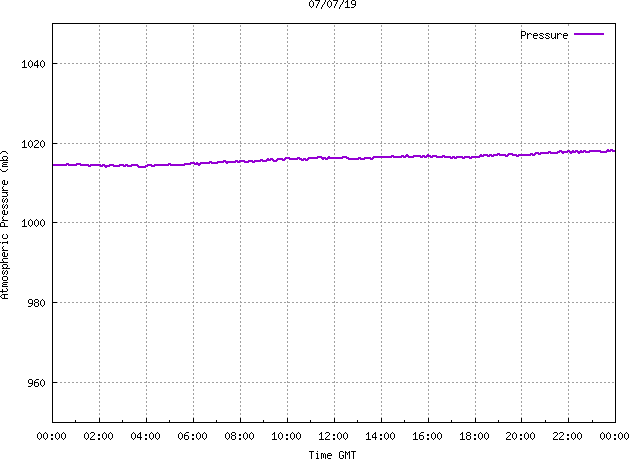The PML meteorological station, situated on the south-west corner of the building roof, consists of a Hygroclip S3 temperature and humidity sensor housed in a radiation shield, a Mierij Meteo solid state wind sensor (MMW-005), a Chelsea instruments half-hemisphere PAR sensor, a Li-Cor pyranometer (LI-200SZ) and an Omni Instruments 6" tipping bucket raingauge (RG200). The data are logged every 5 minutes using a Pace Scientific XR5 data logger. The real-time rainfall data is likely in error - the correct values will be displayed after a time lag of approximately 24 hours. The meteorological station is sheltered from winds in the north-east and underestimates winds from this quarter. To use these data please contact Dr Tim Smyth.