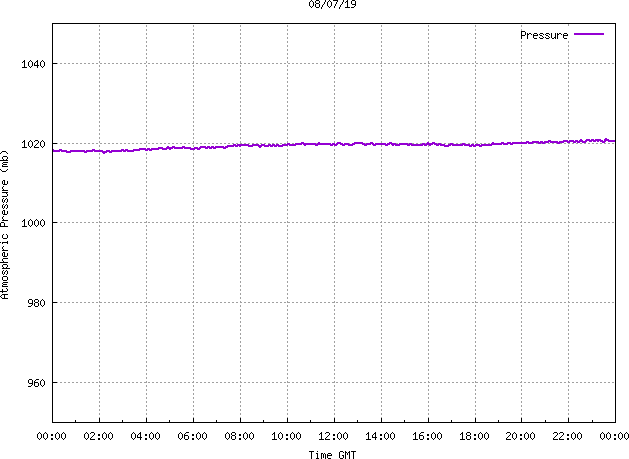 The PML meteorological station, situated on the south-west corner of the building roof, consists of a Hygroclip S3 temperature and humidity sensor housed in a radiation shield, a Mierij Meteo solid state wind sensor (MMW-005), a Chelsea instruments half-hemisphere PAR sensor, a Li-Cor pyranometer (LI-200SZ) and an Omni Instruments 6" tipping bucket raingauge (RG200). The data are logged every 5 minutes using a Pace Scientific XR5 data logger. The real-time rainfall data is likely in error - the correct values will be displayed after a time lag of approximately 24 hours. The meteorological station is sheltered from winds in the north-east and underestimates winds from this quarter. To use these data please contact Dr Tim Smyth.
