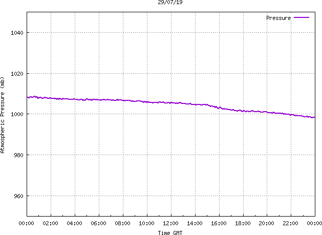 The PML meteorological station, situated on the south-west corner of the building roof, consists of a Hygroclip S3 temperature and humidity sensor housed in a radiation shield, a Mierij Meteo solid state wind sensor (MMW-005), a Chelsea instruments half-hemisphere PAR sensor, a Li-Cor pyranometer (LI-200SZ) and an Omni Instruments 6" tipping bucket raingauge (RG200). The data are logged every 5 minutes using a Pace Scientific XR5 data logger. The real-time rainfall data is likely in error - the correct values will be displayed after a time lag of approximately 24 hours. The meteorological station is sheltered from winds in the north-east and underestimates winds from this quarter. To use these data please contact Dr Tim Smyth.