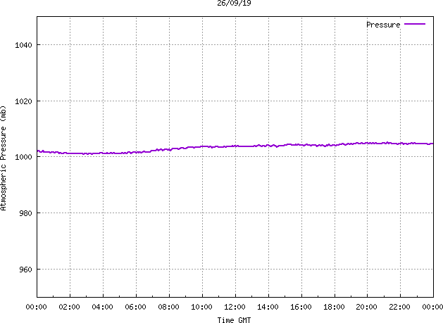 The PML meteorological station, situated on the south-west corner of the building roof, consists of a Hygroclip S3 temperature and humidity sensor housed in a radiation shield, a Mierij Meteo solid state wind sensor (MMW-005), a Chelsea instruments half-hemisphere PAR sensor, a Li-Cor pyranometer (LI-200SZ) and an Omni Instruments 6" tipping bucket raingauge (RG200). The data are logged every 5 minutes using a Pace Scientific XR5 data logger. The real-time rainfall data is likely in error - the correct values will be displayed after a time lag of approximately 24 hours. The meteorological station is sheltered from winds in the north-east and underestimates winds from this quarter. To use these data please contact Dr Tim Smyth.