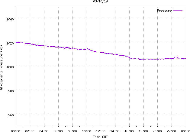 The PML meteorological station, situated on the south-west corner of the building roof, consists of a Hygroclip S3 temperature and humidity sensor housed in a radiation shield, a Mierij Meteo solid state wind sensor (MMW-005), a Chelsea instruments half-hemisphere PAR sensor, a Li-Cor pyranometer (LI-200SZ) and an Omni Instruments 6" tipping bucket raingauge (RG200). The data are logged every 5 minutes using a Pace Scientific XR5 data logger. The real-time rainfall data is likely in error - the correct values will be displayed after a time lag of approximately 24 hours. The meteorological station is sheltered from winds in the north-east and underestimates winds from this quarter. To use these data please contact Dr Tim Smyth.