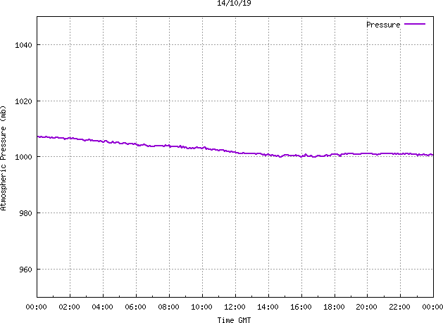 The PML meteorological station, situated on the south-west corner of the building roof, consists of a Hygroclip S3 temperature and humidity sensor housed in a radiation shield, a Mierij Meteo solid state wind sensor (MMW-005), a Chelsea instruments half-hemisphere PAR sensor, a Li-Cor pyranometer (LI-200SZ) and an Omni Instruments 6" tipping bucket raingauge (RG200). The data are logged every 5 minutes using a Pace Scientific XR5 data logger. The real-time rainfall data is likely in error - the correct values will be displayed after a time lag of approximately 24 hours. The meteorological station is sheltered from winds in the north-east and underestimates winds from this quarter. To use these data please contact Dr Tim Smyth.