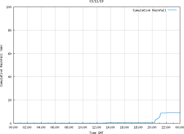 - Max Rainfall Rate: 27.00 mm h-1 Time: 21:11:47 GMT