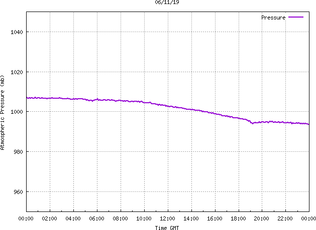 The PML meteorological station, situated on the south-west corner of the building roof, consists of a Hygroclip S3 temperature and humidity sensor housed in a radiation shield, a Mierij Meteo solid state wind sensor (MMW-005), a Chelsea instruments half-hemisphere PAR sensor, a Li-Cor pyranometer (LI-200SZ) and an Omni Instruments 6" tipping bucket raingauge (RG200). The data are logged every 5 minutes using a Pace Scientific XR5 data logger. The real-time rainfall data is likely in error - the correct values will be displayed after a time lag of approximately 24 hours. The meteorological station is sheltered from winds in the north-east and underestimates winds from this quarter. To use these data please contact Dr Tim Smyth.