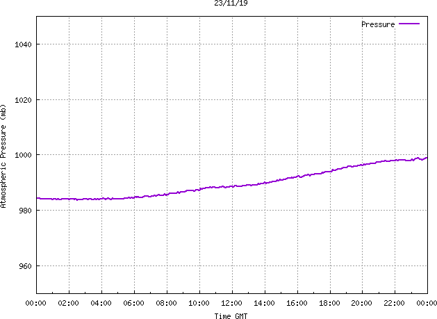 The PML meteorological station, situated on the south-west corner of the building roof, consists of a Hygroclip S3 temperature and humidity sensor housed in a radiation shield, a Mierij Meteo solid state wind sensor (MMW-005), a Chelsea instruments half-hemisphere PAR sensor, a Li-Cor pyranometer (LI-200SZ) and an Omni Instruments 6" tipping bucket raingauge (RG200). The data are logged every 5 minutes using a Pace Scientific XR5 data logger. The real-time rainfall data is likely in error - the correct values will be displayed after a time lag of approximately 24 hours. The meteorological station is sheltered from winds in the north-east and underestimates winds from this quarter. To use these data please contact Dr Tim Smyth.