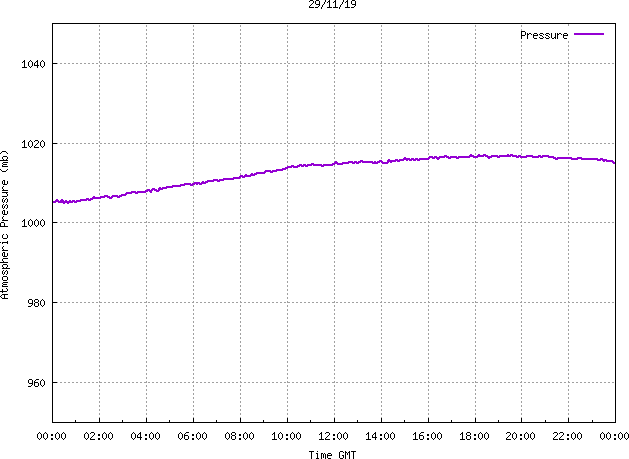 The PML meteorological station, situated on the south-west corner of the building roof, consists of a Hygroclip S3 temperature and humidity sensor housed in a radiation shield, a Mierij Meteo solid state wind sensor (MMW-005), a Chelsea instruments half-hemisphere PAR sensor, a Li-Cor pyranometer (LI-200SZ) and an Omni Instruments 6" tipping bucket raingauge (RG200). The data are logged every 5 minutes using a Pace Scientific XR5 data logger. The real-time rainfall data is likely in error - the correct values will be displayed after a time lag of approximately 24 hours. The meteorological station is sheltered from winds in the north-east and underestimates winds from this quarter. To use these data please contact Dr Tim Smyth.