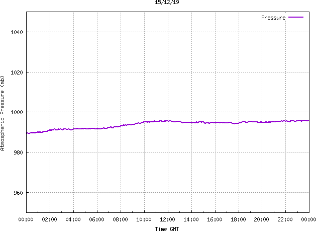 The PML meteorological station, situated on the south-west corner of the building roof, consists of a Hygroclip S3 temperature and humidity sensor housed in a radiation shield, a Mierij Meteo solid state wind sensor (MMW-005), a Chelsea instruments half-hemisphere PAR sensor, a Li-Cor pyranometer (LI-200SZ) and an Omni Instruments 6" tipping bucket raingauge (RG200). The data are logged every 5 minutes using a Pace Scientific XR5 data logger. The real-time rainfall data is likely in error - the correct values will be displayed after a time lag of approximately 24 hours. The meteorological station is sheltered from winds in the north-east and underestimates winds from this quarter. To use these data please contact Dr Tim Smyth.