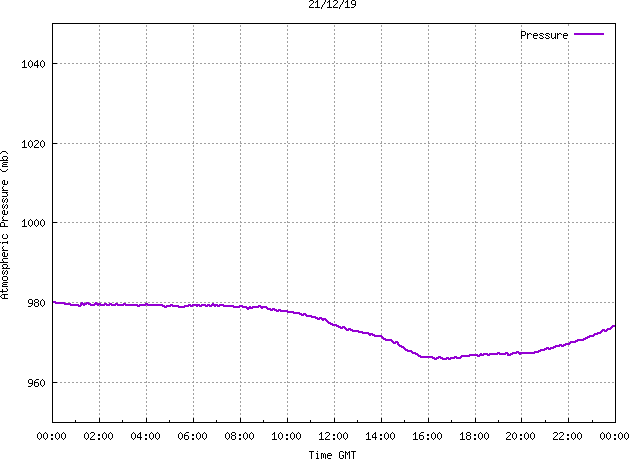 The PML meteorological station, situated on the south-west corner of the building roof, consists of a Hygroclip S3 temperature and humidity sensor housed in a radiation shield, a Mierij Meteo solid state wind sensor (MMW-005), a Chelsea instruments half-hemisphere PAR sensor, a Li-Cor pyranometer (LI-200SZ) and an Omni Instruments 6" tipping bucket raingauge (RG200). The data are logged every 5 minutes using a Pace Scientific XR5 data logger. The real-time rainfall data is likely in error - the correct values will be displayed after a time lag of approximately 24 hours. The meteorological station is sheltered from winds in the north-east and underestimates winds from this quarter. To use these data please contact Dr Tim Smyth.