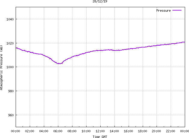 The PML meteorological station, situated on the south-west corner of the building roof, consists of a Hygroclip S3 temperature and humidity sensor housed in a radiation shield, a Mierij Meteo solid state wind sensor (MMW-005), a Chelsea instruments half-hemisphere PAR sensor, a Li-Cor pyranometer (LI-200SZ) and an Omni Instruments 6" tipping bucket raingauge (RG200). The data are logged every 5 minutes using a Pace Scientific XR5 data logger. The real-time rainfall data is likely in error - the correct values will be displayed after a time lag of approximately 24 hours. The meteorological station is sheltered from winds in the north-east and underestimates winds from this quarter. To use these data please contact Dr Tim Smyth.
