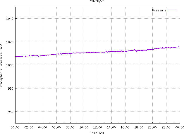 The PML meteorological station, situated on the south-west corner of the building roof, consists of a Hygroclip S3 temperature and humidity sensor housed in a radiation shield, a Mierij Meteo solid state wind sensor (MMW-005), a Chelsea instruments half-hemisphere PAR sensor, a Li-Cor pyranometer (LI-200SZ) and an Omni Instruments 6" tipping bucket raingauge (RG200). The data are logged every 5 minutes using a Pace Scientific XR5 data logger. The real-time rainfall data is likely in error - the correct values will be displayed after a time lag of approximately 24 hours. The meteorological station is sheltered from winds in the north-east and underestimates winds from this quarter. To use these data please contact Dr Tim Smyth.