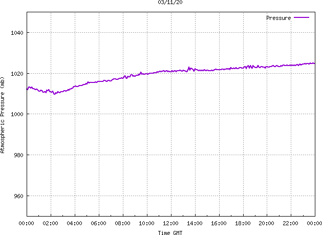 The PML meteorological station, situated on the south-west corner of the building roof, consists of a Hygroclip S3 temperature and humidity sensor housed in a radiation shield, a Mierij Meteo solid state wind sensor (MMW-005), a Chelsea instruments half-hemisphere PAR sensor, a Li-Cor pyranometer (LI-200SZ) and an Omni Instruments 6" tipping bucket raingauge (RG200). The data are logged every 5 minutes using a Pace Scientific XR5 data logger. The real-time rainfall data is likely in error - the correct values will be displayed after a time lag of approximately 24 hours. The meteorological station is sheltered from winds in the north-east and underestimates winds from this quarter. To use these data please contact Dr Tim Smyth.
