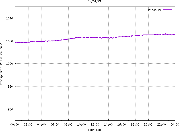 The PML meteorological station, situated on the south-west corner of the building roof, consists of a Hygroclip S3 temperature and humidity sensor housed in a radiation shield, a Mierij Meteo solid state wind sensor (MMW-005), a Chelsea instruments half-hemisphere PAR sensor, a Li-Cor pyranometer (LI-200SZ) and an Omni Instruments 6" tipping bucket raingauge (RG200). The data are logged every 5 minutes using a Pace Scientific XR5 data logger. The real-time rainfall data is likely in error - the correct values will be displayed after a time lag of approximately 24 hours. The meteorological station is sheltered from winds in the north-east and underestimates winds from this quarter. To use these data please contact Dr Tim Smyth.