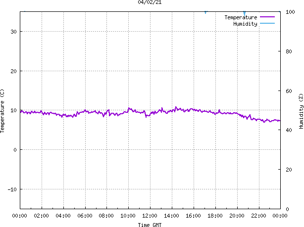 - Max Temp: 10.8 °C Time: 14:21:27 GMT