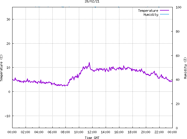 - Max Temp: 12.0 °C Time: 11:31:35 GMT