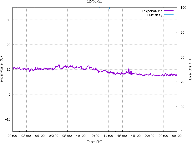 - Max Temp: 12.1 °C Time: 6:47:01 GMT