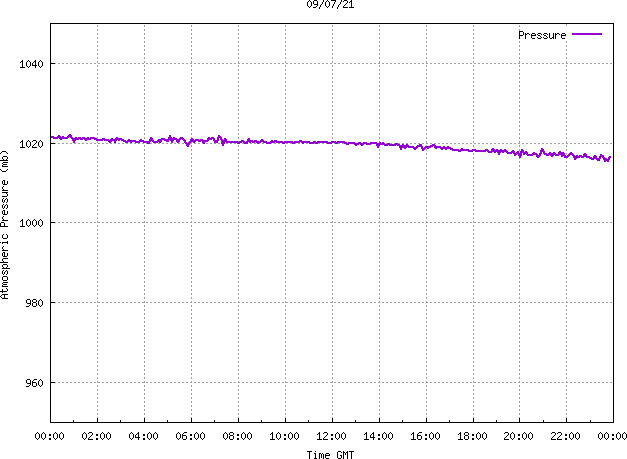 The PML meteorological station, situated on the south-west corner of the building roof, consists of a Hygroclip S3 temperature and humidity sensor housed in a radiation shield, a Mierij Meteo solid state wind sensor (MMW-005), a Chelsea instruments half-hemisphere PAR sensor, a Li-Cor pyranometer (LI-200SZ) and an Omni Instruments 6" tipping bucket raingauge (RG200). The data are logged every 5 minutes using a Pace Scientific XR5 data logger. The real-time rainfall data is likely in error - the correct values will be displayed after a time lag of approximately 24 hours. The meteorological station is sheltered from winds in the north-east and underestimates winds from this quarter. To use these data please contact Dr Tim Smyth.