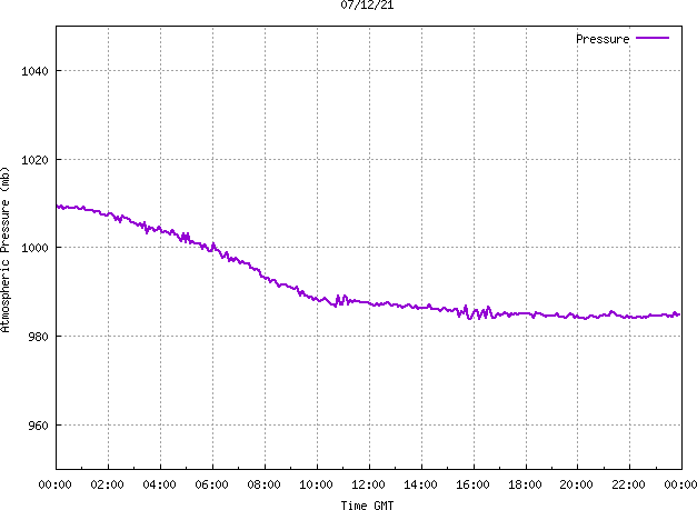 The PML meteorological station, situated on the south-west corner of the building roof, consists of a Hygroclip S3 temperature and humidity sensor housed in a radiation shield, a Mierij Meteo solid state wind sensor (MMW-005), a Chelsea instruments half-hemisphere PAR sensor, a Li-Cor pyranometer (LI-200SZ) and an Omni Instruments 6" tipping bucket raingauge (RG200). The data are logged every 5 minutes using a Pace Scientific XR5 data logger. The real-time rainfall data is likely in error - the correct values will be displayed after a time lag of approximately 24 hours. The meteorological station is sheltered from winds in the north-east and underestimates winds from this quarter. To use these data please contact Dr Tim Smyth.