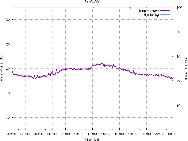 - Max Temp: 12.1 °C Time: 13:28:41 GMT