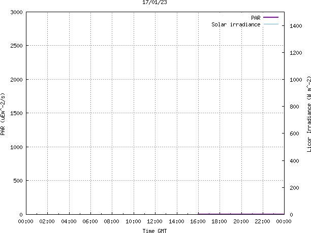 The PML meteorological station, situated on the south-west corner of the building roof, consists of a Hygroclip S3 temperature and humidity sensor housed in a radiation shield, a Mierij Meteo solid state wind sensor (MMW-005), a Chelsea instruments half-hemisphere PAR sensor, a Li-Cor pyranometer (LI-200SZ) and an Omni Instruments 6" tipping bucket raingauge (RG200). The data are logged every 5 minutes using a Pace Scientific XR5 data logger. The real-time rainfall data is likely in error - the correct values will be displayed after a time lag of approximately 24 hours. The meteorological station is sheltered from winds in the north-east and underestimates winds from this quarter. To use these data please contact Dr Tim Smyth.