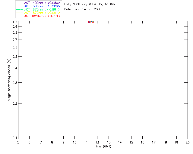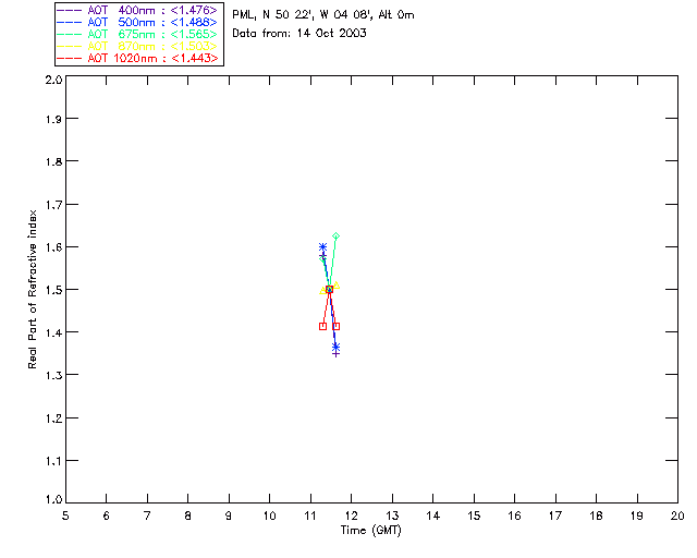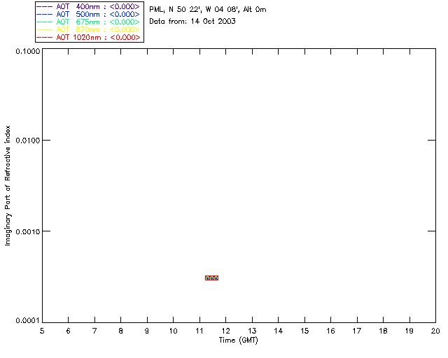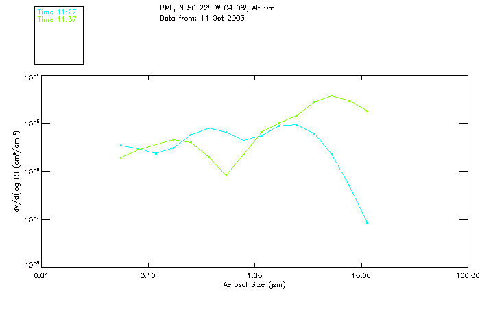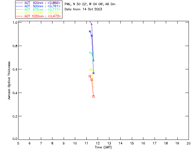 In May 2001 a PREDE POM01-L was installed on the roof of the Plymouth Marine Laboratory to continue the atmospheric correction research of the PML Remote Sensing Group. This was to replace the AERONET CIMEL sunphotometer situated at Rame Head which was decommissioned in 1999. The instrument operates at 7 wavelengths (315, 400, 500, 670, 870, 940 and 1020nm) and scans at pre-set angles away from the solar disk to determine, using the inversion code of Nakajima et al. (2006), various properties of tiny particles called aerosols within the atmospheric column. From these measurements useful atmospheric aerosol parameters such as the Aerosol Optical Thickness (AOT), aerosol size distribution and single scattering albedo can be calculated. Marine aerosols tend to be bigger (D > 1µm) than those generated over the land (0.01 < D < 1µm) and are of a different chemical composition; marine aerosols are salt particles whereas terrestrial aerosols are sulphate compounds.
