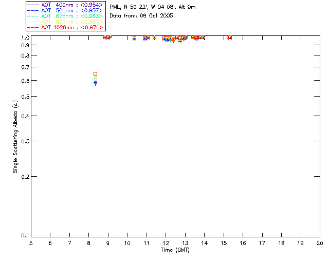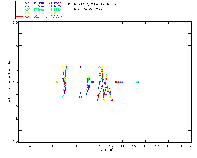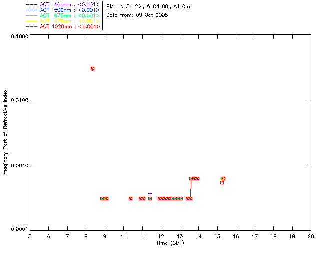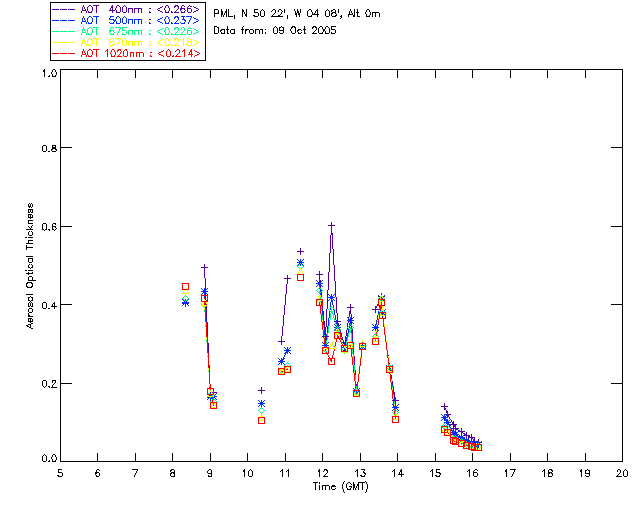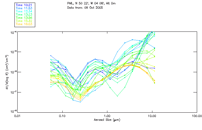 In May 2001 a PREDE POM01-L was installed on the roof of the Plymouth Marine Laboratory to continue the atmospheric correction research of the PML Remote Sensing Group. This was to replace the AERONET CIMEL sunphotometer situated at Rame Head which was decommissioned in 1999. The instrument operates at 7 wavelengths (315, 400, 500, 670, 870, 940 and 1020nm) and scans at pre-set angles away from the solar disk to determine, using the inversion code of Nakajima et al. (2006), various properties of tiny particles called aerosols within the atmospheric column. From these measurements useful atmospheric aerosol parameters such as the Aerosol Optical Thickness (AOT), aerosol size distribution and single scattering albedo can be calculated. Marine aerosols tend to be bigger (D > 1µm) than those generated over the land (0.01 < D < 1µm) and are of a different chemical composition; marine aerosols are salt particles whereas terrestrial aerosols are sulphate compounds.