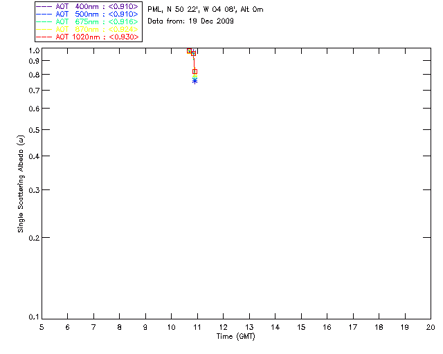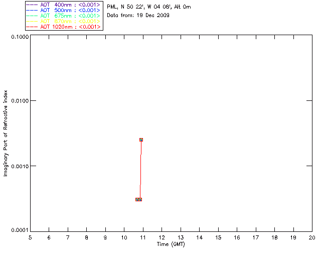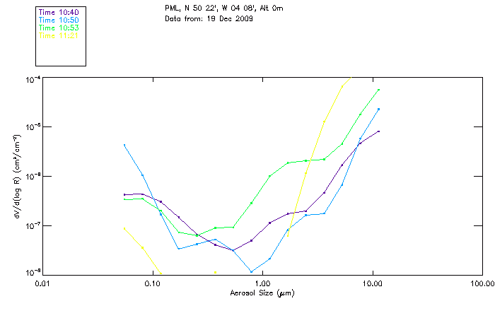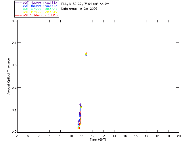 In May 2001 a PREDE POM01-L was installed on the roof of the Plymouth Marine Laboratory to continue the atmospheric correction research of the PML Remote Sensing Group. This was to replace the AERONET CIMEL sunphotometer situated at Rame Head which was decommissioned in 1999. The instrument operates at 7 wavelengths (315, 400, 500, 670, 870, 940 and 1020nm) and scans at pre-set angles away from the solar disk to determine, using the inversion code of Nakajima et al. (2006), various properties of tiny particles called aerosols within the atmospheric column. From these measurements useful atmospheric aerosol parameters such as the Aerosol Optical Thickness (AOT), aerosol size distribution and single scattering albedo can be calculated. Marine aerosols tend to be bigger (D > 1µm) than those generated over the land (0.01 < D < 1µm) and are of a different chemical composition; marine aerosols are salt particles whereas terrestrial aerosols are sulphate compounds.