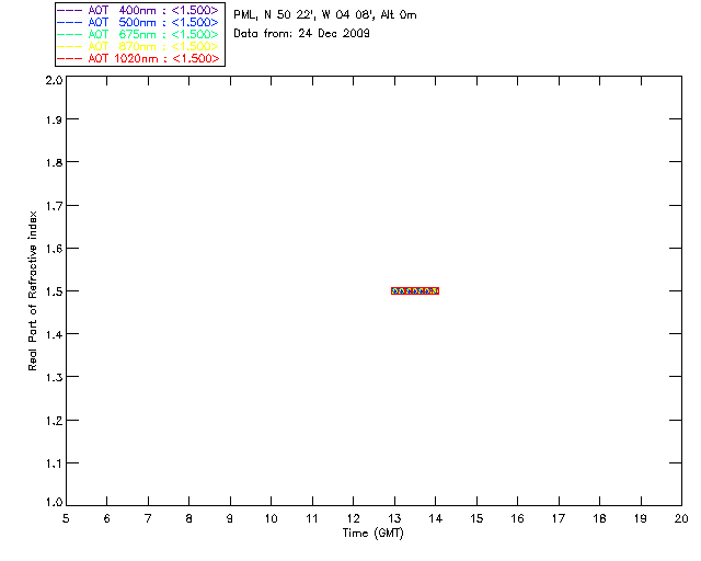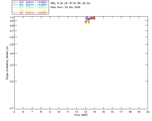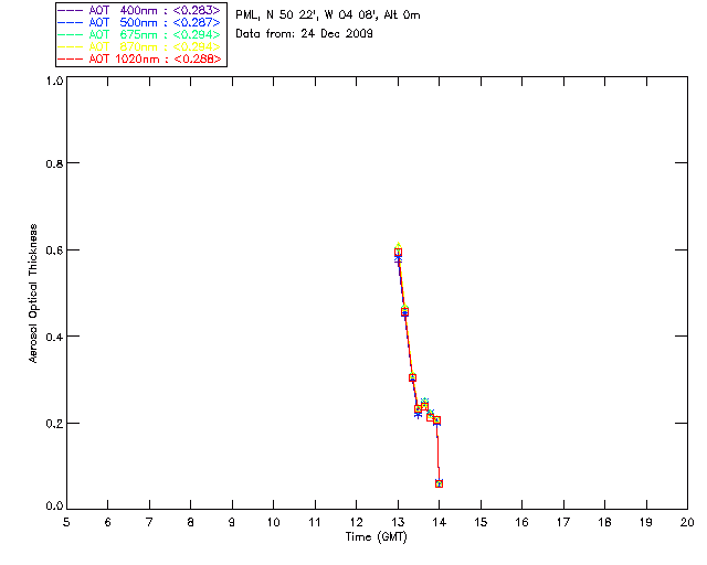 In May 2001 a PREDE POM01-L was installed on the roof of the Plymouth Marine Laboratory to continue the atmospheric correction research of the PML Remote Sensing Group. This was to replace the AERONET CIMEL sunphotometer situated at Rame Head which was decommissioned in 1999. The instrument operates at 7 wavelengths (315, 400, 500, 670, 870, 940 and 1020nm) and scans at pre-set angles away from the solar disk to determine, using the inversion code of Nakajima et al. (2006), various properties of tiny particles called aerosols within the atmospheric column. From these measurements useful atmospheric aerosol parameters such as the Aerosol Optical Thickness (AOT), aerosol size distribution and single scattering albedo can be calculated. Marine aerosols tend to be bigger (D > 1µm) than those generated over the land (0.01 < D < 1µm) and are of a different chemical composition; marine aerosols are salt particles whereas terrestrial aerosols are sulphate compounds.