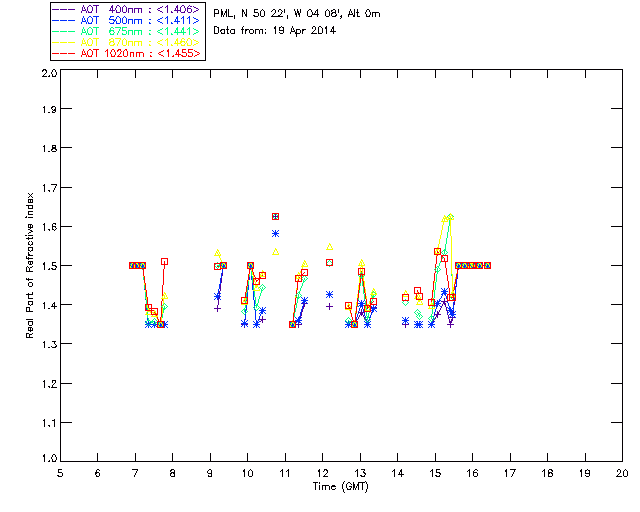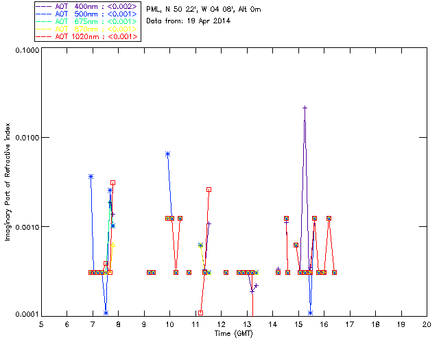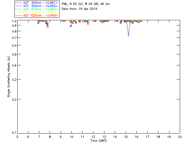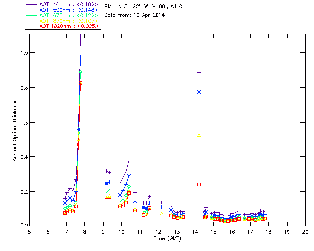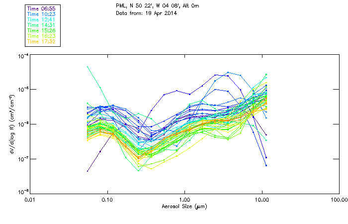 In May 2001 a PREDE POM01-L was installed on the roof of the Plymouth Marine Laboratory to continue the atmospheric correction research of the PML Remote Sensing Group. This was to replace the AERONET CIMEL sunphotometer situated at Rame Head which was decommissioned in 1999. The instrument operates at 7 wavelengths (315, 400, 500, 670, 870, 940 and 1020nm) and scans at pre-set angles away from the solar disk to determine, using the inversion code of Nakajima et al. (2006), various properties of tiny particles called aerosols within the atmospheric column. From these measurements useful atmospheric aerosol parameters such as the Aerosol Optical Thickness (AOT), aerosol size distribution and single scattering albedo can be calculated. Marine aerosols tend to be bigger (D > 1µm) than those generated over the land (0.01 < D < 1µm) and are of a different chemical composition; marine aerosols are salt particles whereas terrestrial aerosols are sulphate compounds.