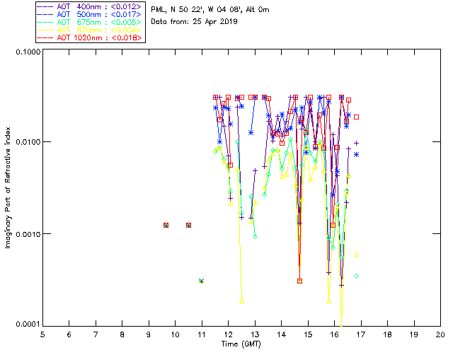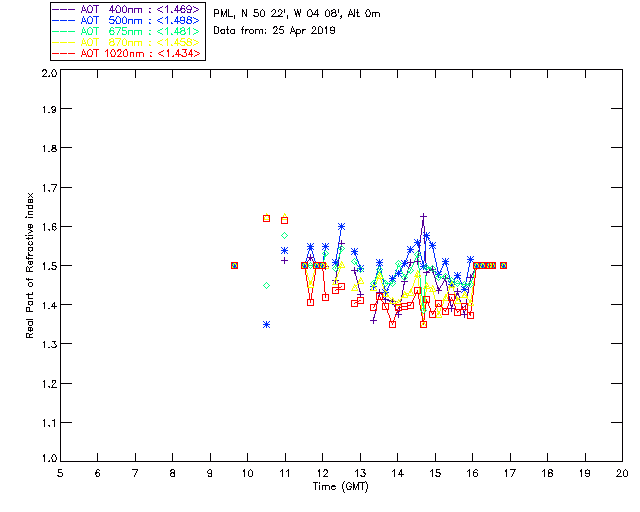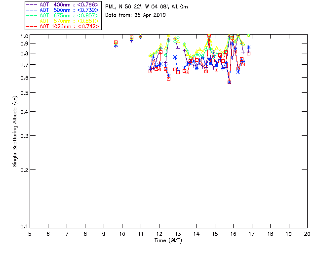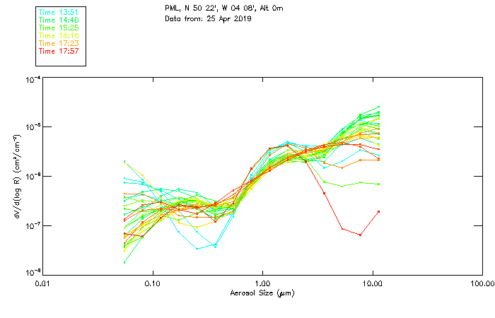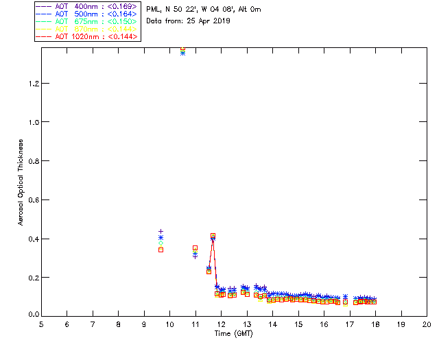 In May 2001 a PREDE POM01-L was installed on the roof of the Plymouth Marine Laboratory to continue the atmospheric correction research of the PML Remote Sensing Group. This was to replace the AERONET CIMEL sunphotometer situated at Rame Head which was decommissioned in 1999. The instrument operates at 7 wavelengths (315, 400, 500, 670, 870, 940 and 1020nm) and scans at pre-set angles away from the solar disk to determine, using the inversion code of Nakajima et al. (2006), various properties of tiny particles called aerosols within the atmospheric column. From these measurements useful atmospheric aerosol parameters such as the Aerosol Optical Thickness (AOT), aerosol size distribution and single scattering albedo can be calculated. Marine aerosols tend to be bigger (D > 1µm) than those generated over the land (0.01 < D < 1µm) and are of a different chemical composition; marine aerosols are salt particles whereas terrestrial aerosols are sulphate compounds.