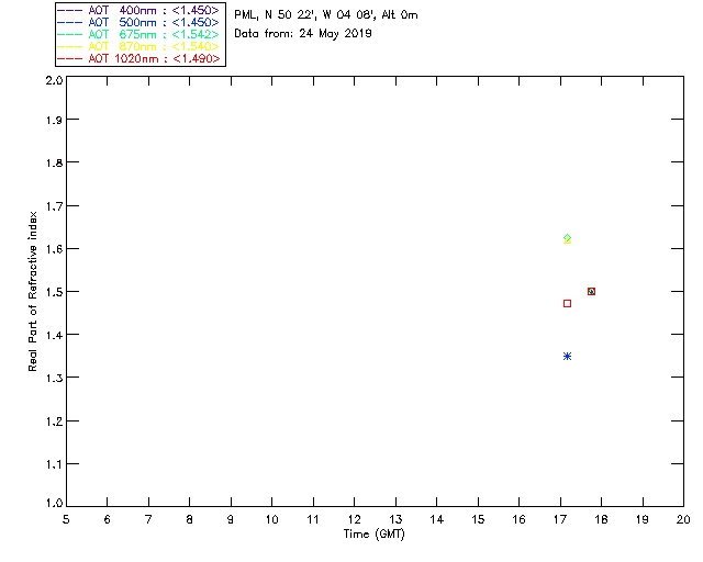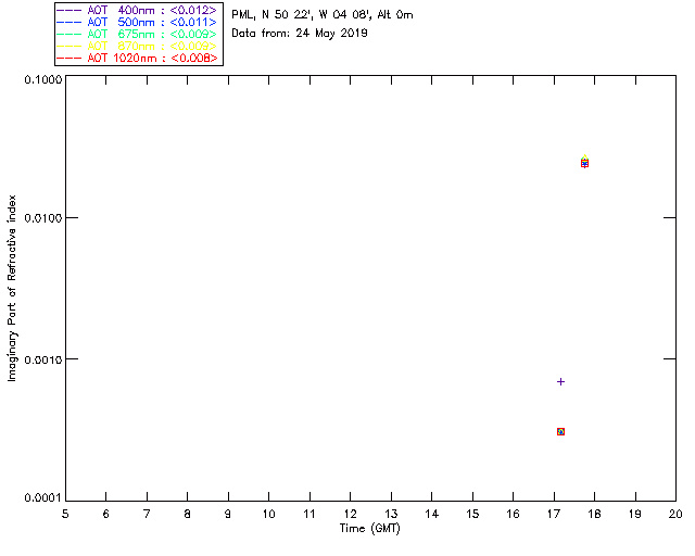 In May 2001 a PREDE POM01-L was installed on the roof of the Plymouth Marine Laboratory to continue the atmospheric correction research of the PML Remote Sensing Group. This was to replace the AERONET CIMEL sunphotometer situated at Rame Head which was decommissioned in 1999. The instrument operates at 7 wavelengths (315, 400, 500, 670, 870, 940 and 1020nm) and scans at pre-set angles away from the solar disk to determine, using the inversion code of Nakajima et al. (2006), various properties of tiny particles called aerosols within the atmospheric column. From these measurements useful atmospheric aerosol parameters such as the Aerosol Optical Thickness (AOT), aerosol size distribution and single scattering albedo can be calculated. Marine aerosols tend to be bigger (D > 1µm) than those generated over the land (0.01 < D < 1µm) and are of a different chemical composition; marine aerosols are salt particles whereas terrestrial aerosols are sulphate compounds.