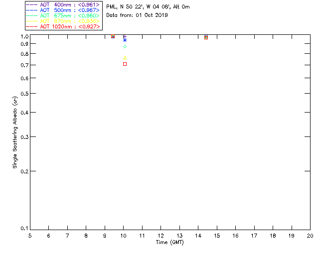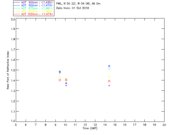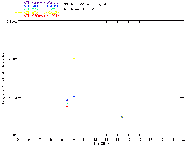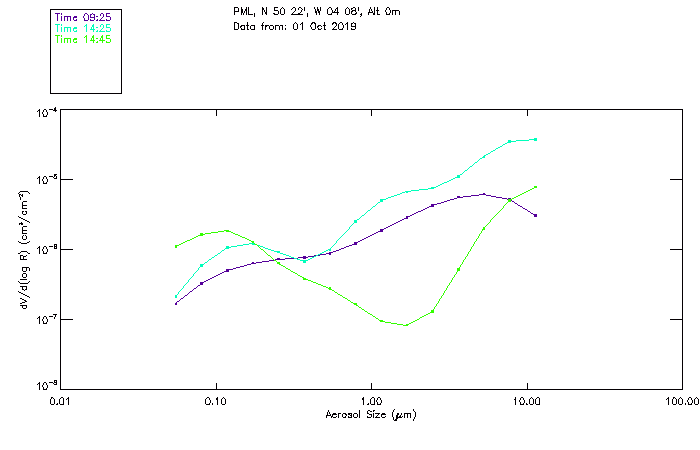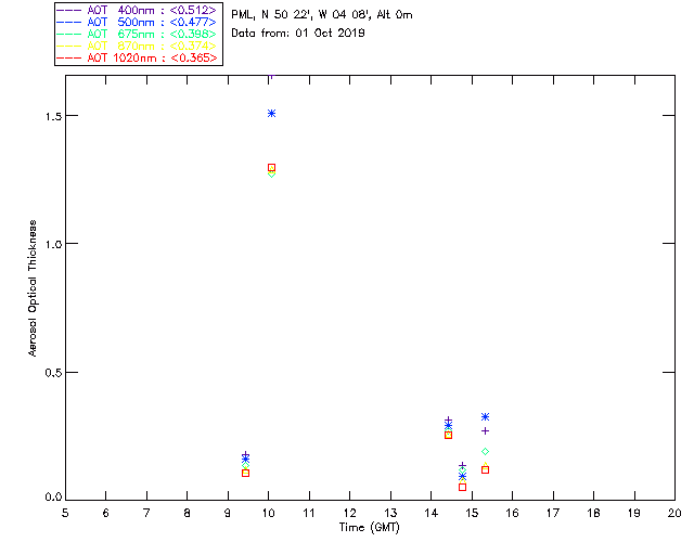 In May 2001 a PREDE POM01-L was installed on the roof of the Plymouth Marine Laboratory to continue the atmospheric correction research of the PML Remote Sensing Group. This was to replace the AERONET CIMEL sunphotometer situated at Rame Head which was decommissioned in 1999. The instrument operates at 7 wavelengths (315, 400, 500, 670, 870, 940 and 1020nm) and scans at pre-set angles away from the solar disk to determine, using the inversion code of Nakajima et al. (2006), various properties of tiny particles called aerosols within the atmospheric column. From these measurements useful atmospheric aerosol parameters such as the Aerosol Optical Thickness (AOT), aerosol size distribution and single scattering albedo can be calculated. Marine aerosols tend to be bigger (D > 1µm) than those generated over the land (0.01 < D < 1µm) and are of a different chemical composition; marine aerosols are salt particles whereas terrestrial aerosols are sulphate compounds.