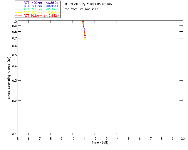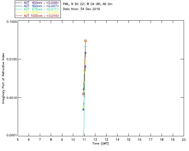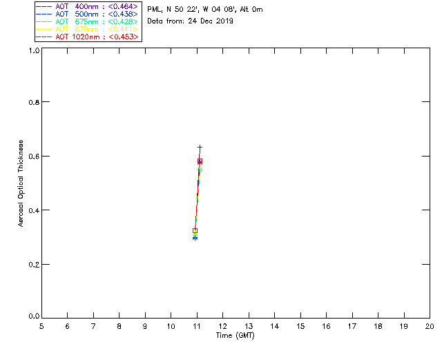 In May 2001 a PREDE POM01-L was installed on the roof of the Plymouth Marine Laboratory to continue the atmospheric correction research of the PML Remote Sensing Group. This was to replace the AERONET CIMEL sunphotometer situated at Rame Head which was decommissioned in 1999. The instrument operates at 7 wavelengths (315, 400, 500, 670, 870, 940 and 1020nm) and scans at pre-set angles away from the solar disk to determine, using the inversion code of Nakajima et al. (2006), various properties of tiny particles called aerosols within the atmospheric column. From these measurements useful atmospheric aerosol parameters such as the Aerosol Optical Thickness (AOT), aerosol size distribution and single scattering albedo can be calculated. Marine aerosols tend to be bigger (D > 1µm) than those generated over the land (0.01 < D < 1µm) and are of a different chemical composition; marine aerosols are salt particles whereas terrestrial aerosols are sulphate compounds.